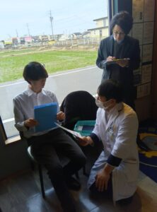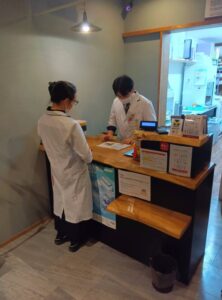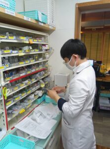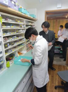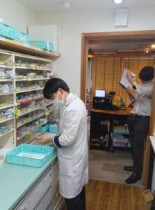 多くの本部社員に囲まれながら 受付~投薬-薬歴記載まで隅々までチェック採点を行い 薬剤師として2年目へ迎えられるように